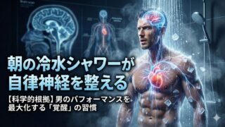 【科学的根拠あり】朝の冷水シャワーの効果とは?自律神経を強制リセットし、ドーパミンを250%上昇させるメカニズムを解説。単なる精神論ではない、男のパフォーマンスを最大化する「覚醒」の習慣と、実践に必要なツールを紹介する。